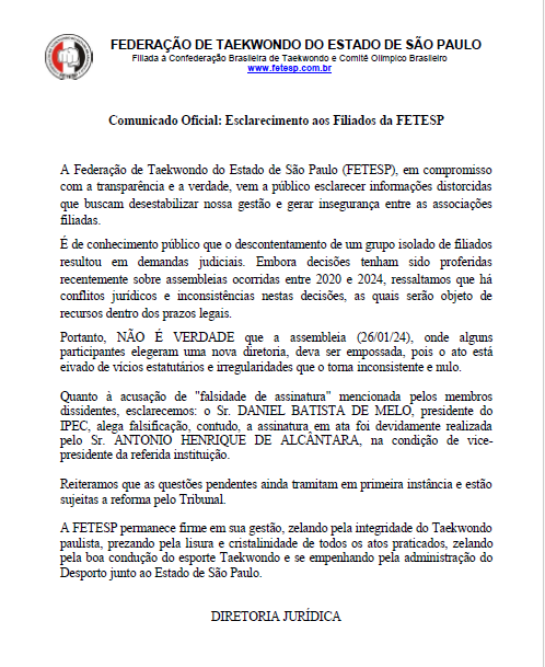 Edital – Convocação de AGE para Deliberação sobre Parecer da Comissão de Ética e Disciplina da FETESP Leia mais... 20/01/2026