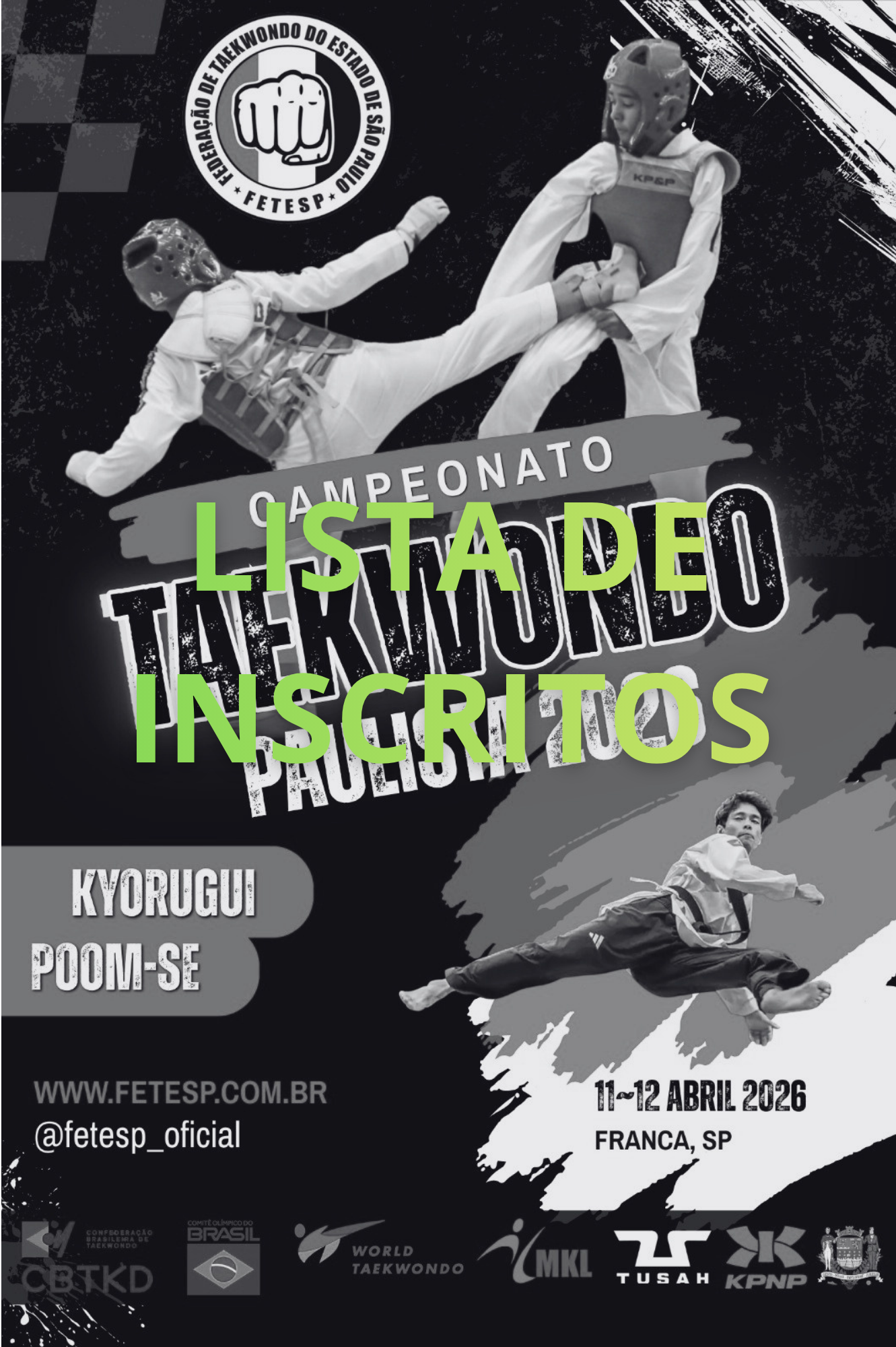 3ª ETAPA DO CAMPEONATO PAULISTA 2026, FRANCA – LISTA DE INSCRITOS