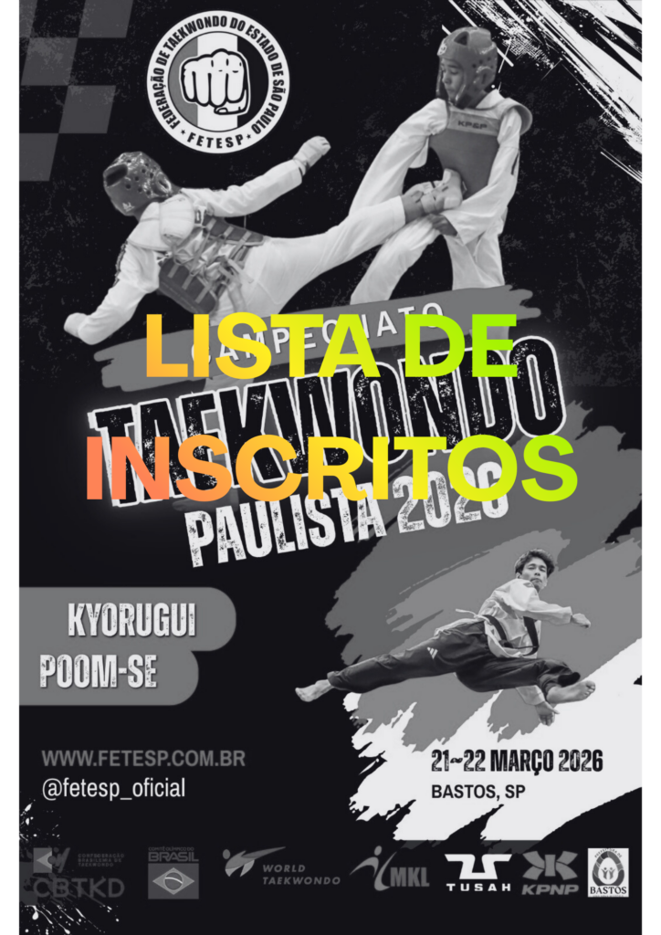 A FETESP vem por meio desta publicar o sorteio de poomse, lista de inscritos e chaves da 2ª ETAPA CAMPEONATO PAULISTA 2026, BASTOS a ser realizado no dia 21 e 22 de março de 2026. Quaisquer erros da federação, por favor entrar em contato pelo WhatsApp: +55 11 93340-5177 Link do ofício oficial: OFICIO 2ª […]
